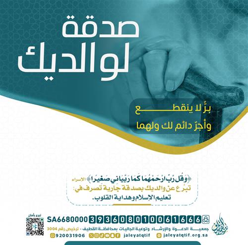 كل صدقة تخرج عن والديك هي برٌّ ووفاءٌ واعترافٌ بالجميل،